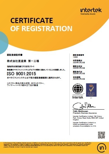 | 2020年 3月 | 第一工場にて ISO9001品質マネジメントシステム 認定取得 |